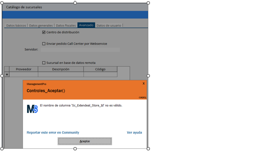 Hola, buenos días, su valiosa ayuda para poder concluir el alta de una sucursal , ERROR: al momento de aceptar el alta, no deja, mandando lo siguiente: