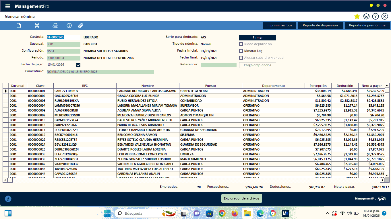 folio de nómina: 01-0002996 número empleado:0000000008 Error: efacturaPro.dll - Firma_Documento()
