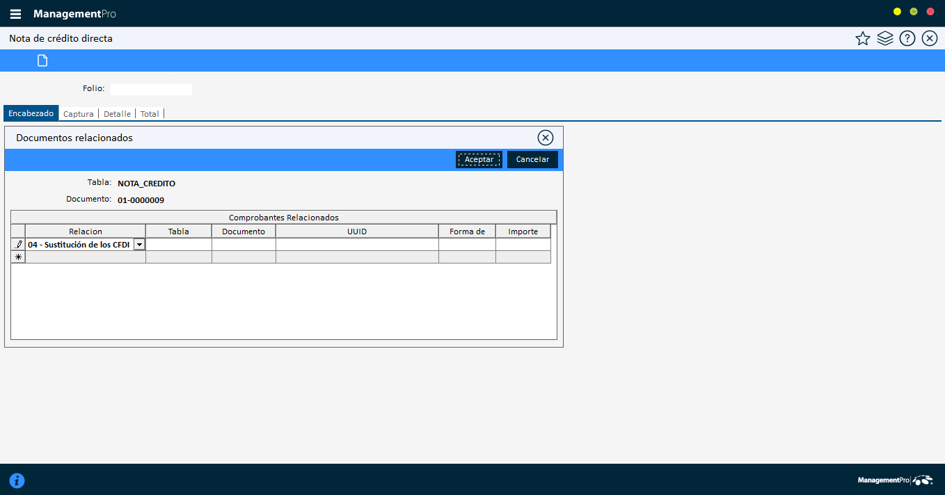 Me podrian apoyar en decirme el paso a paso de como hacer una cancelacion de nota de credito para que venga la leyenda 04 sustitucion .