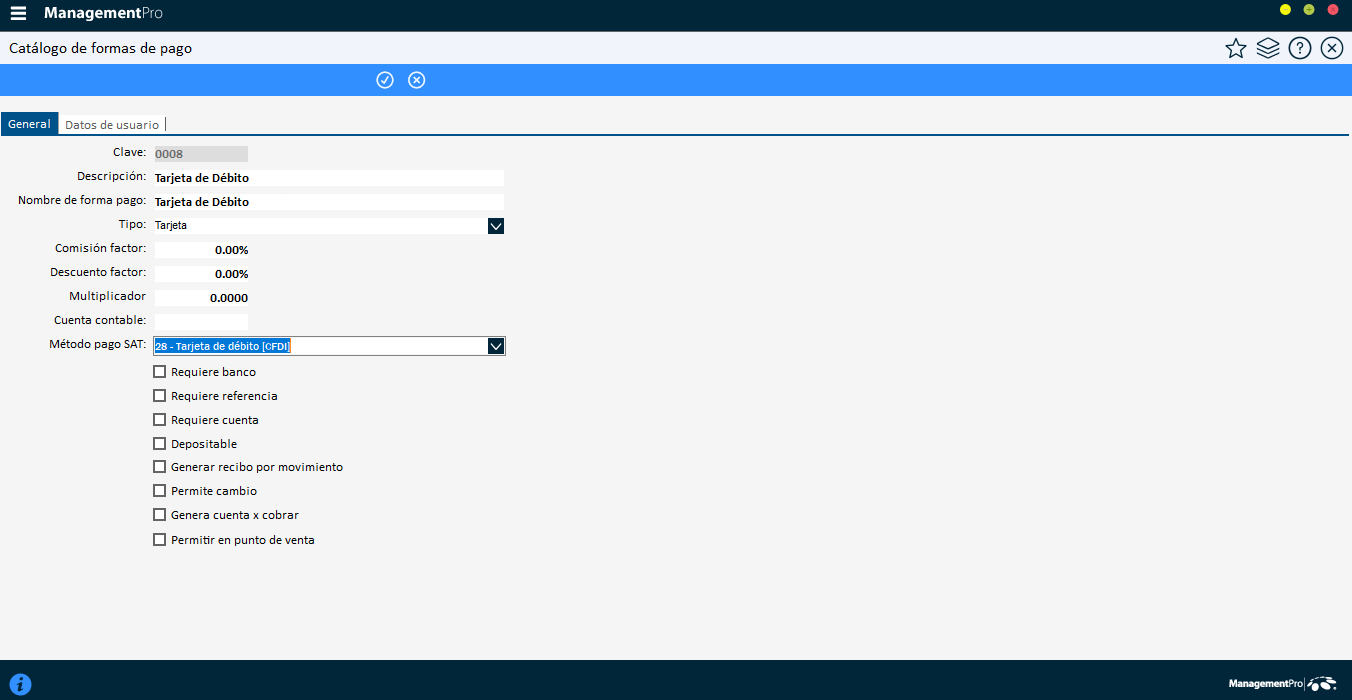 Buen día, Quisiera saber por que cuando se emite la factura aparece como forma de pago 04 tarjeta de crédito aun cuando el ticket se realizo con tarjeta de debito y así se saco el ticket?