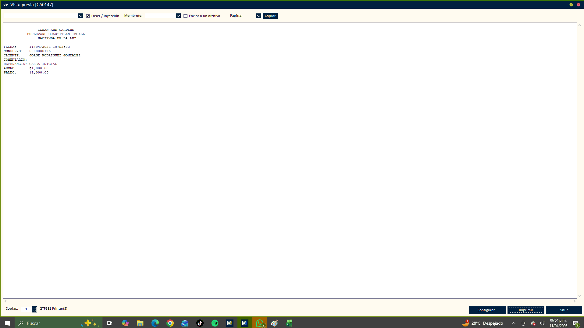 La impresion no se ha podido enviar!