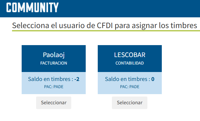 Buenas tardes acabo de comprar unos timpres para facturacion, pero no se si haya tema con el usuario con el que los solicite y si en su caso se pueden reasignar al otro usuario que es de donde el ERP toma los timbres para facturar; los compre con el usuario de la derecha y usualmente usamos el de la izquierda, me podrian ayudar por favor, adjunto captura de los usuarios mencionados y el pago realizado