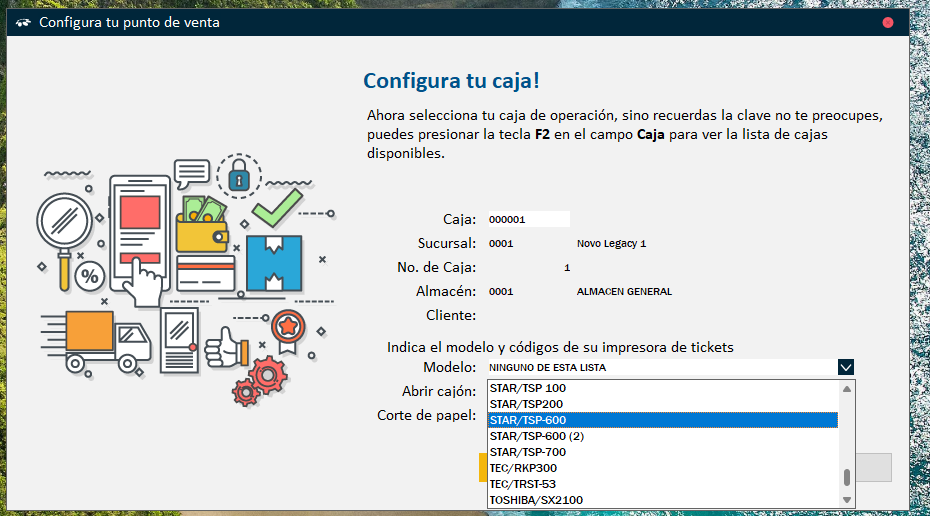 Tengo problema al realizar la conifguracion de mi impresora de recibos. No aparece en la lista de impresoras, el modelo que me llegó e NEXTEP. Tampoco la detecta