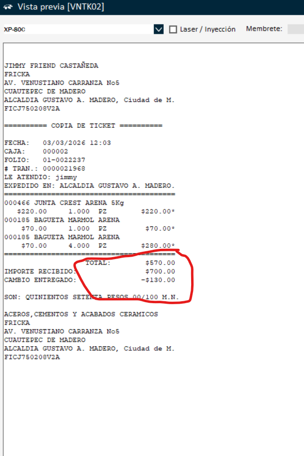 buenas tardes me pueden ayudar a saber por que mi tiket de venta esta dando datos erroneos anexo capturas de pantalla