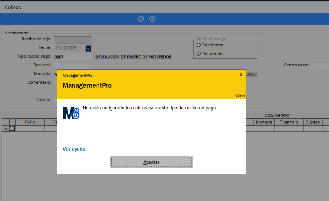 Buenas tardes, ¿Cómo puedo utilizar el tipo recibo de pago 0007 para la recepción de cobros?