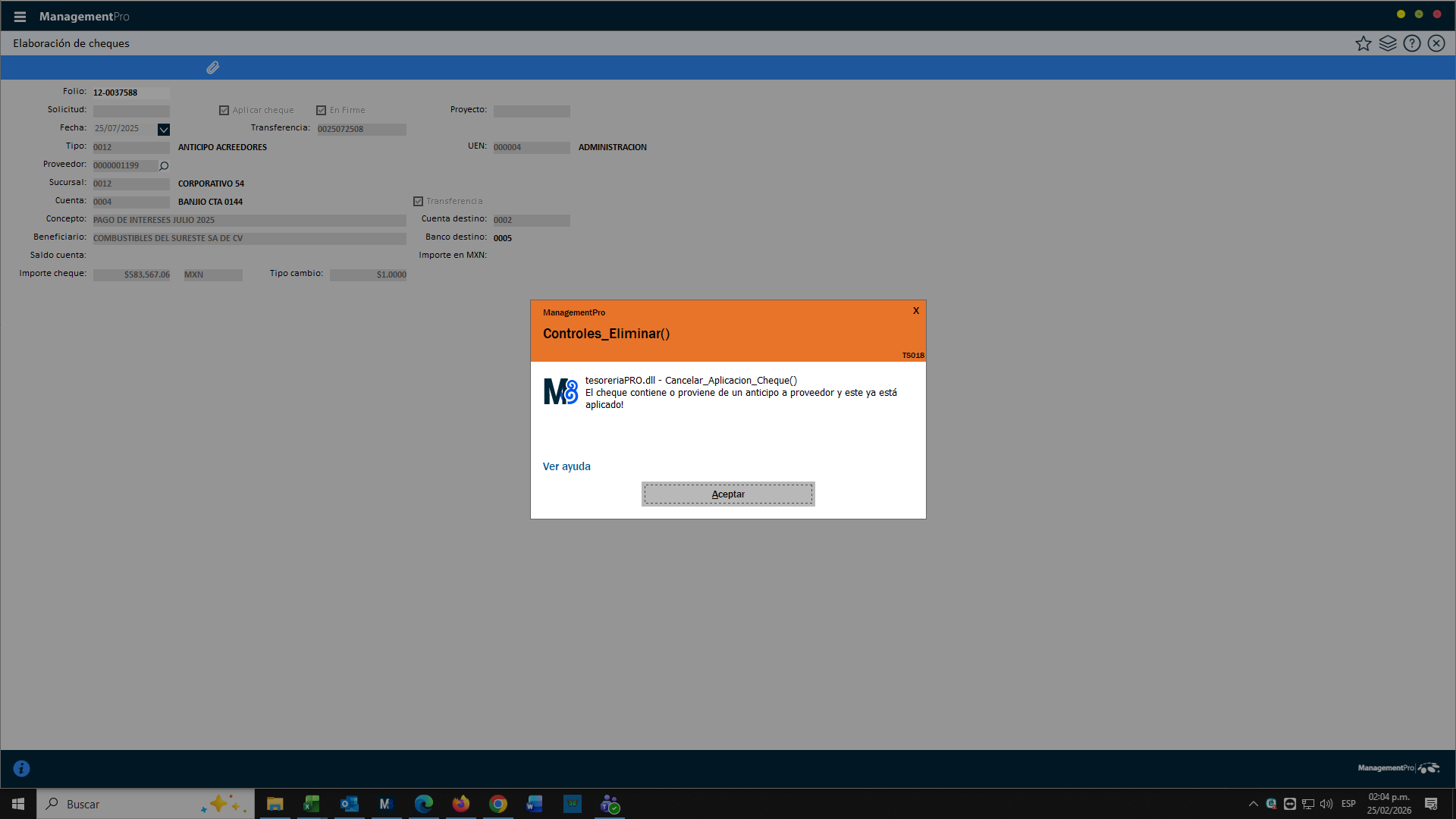 Cual es el proceso para cancelar cheques ya elaborados y aplicados?