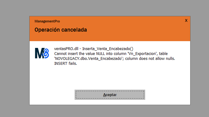 Al momento de ingresar un cobro en el punto de venta me arroja el siguiente error.