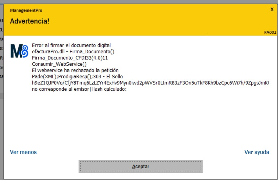 Lorenzo Araujo Tuyub 3 d PROFESIONALES EN INFORMATICA ERP error al timbrar factura Me marca error al timbrar una factura, mi certificado esta vigente, es mas, previamente ya habia timbrado otras y ahora me sale este error... Me gusta Axel Díaz 3 d ¡Hola! Bienvenido al soporte técnico de ManagementPro :tada: Es un gusto atender tu consulta. Estamos aquí para resol... Ver mas Me gusta Lorenzo Araujo Tuyub 3 d Se permiten estos signos + - )( Me gusta