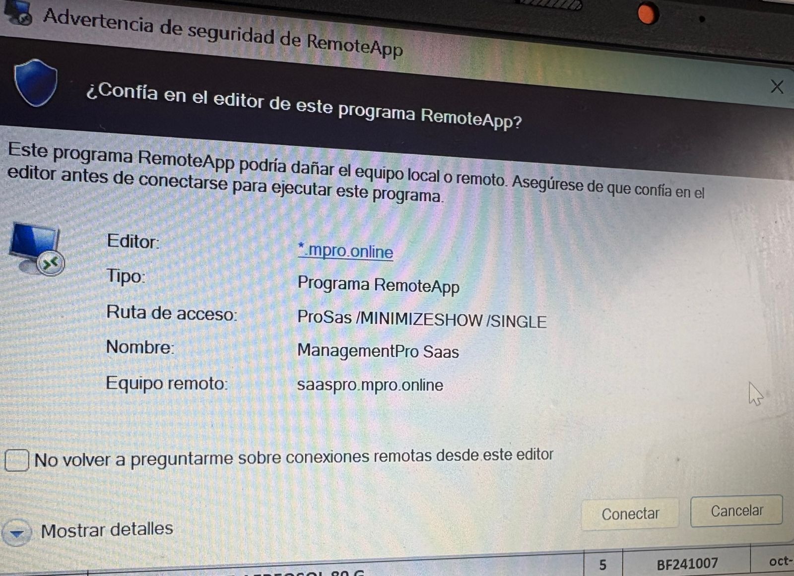 Buenas tardes, nos aparece este error en el sistema, se conecta y desconecta a cada rato, el problema inicio hoy como a medio dia.