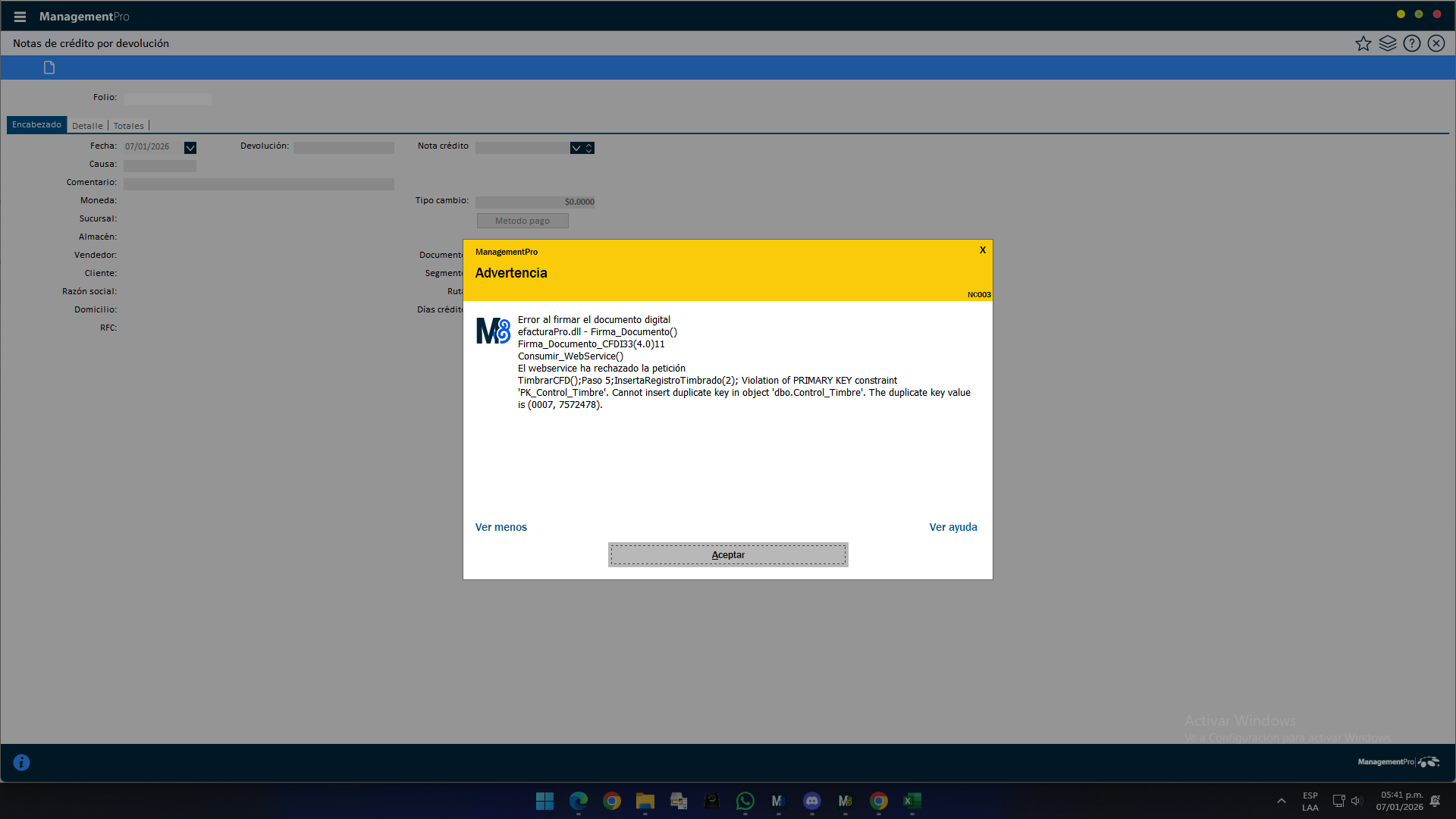 Hola, salió el siguiente error al querer timbrar una nota de crédito.