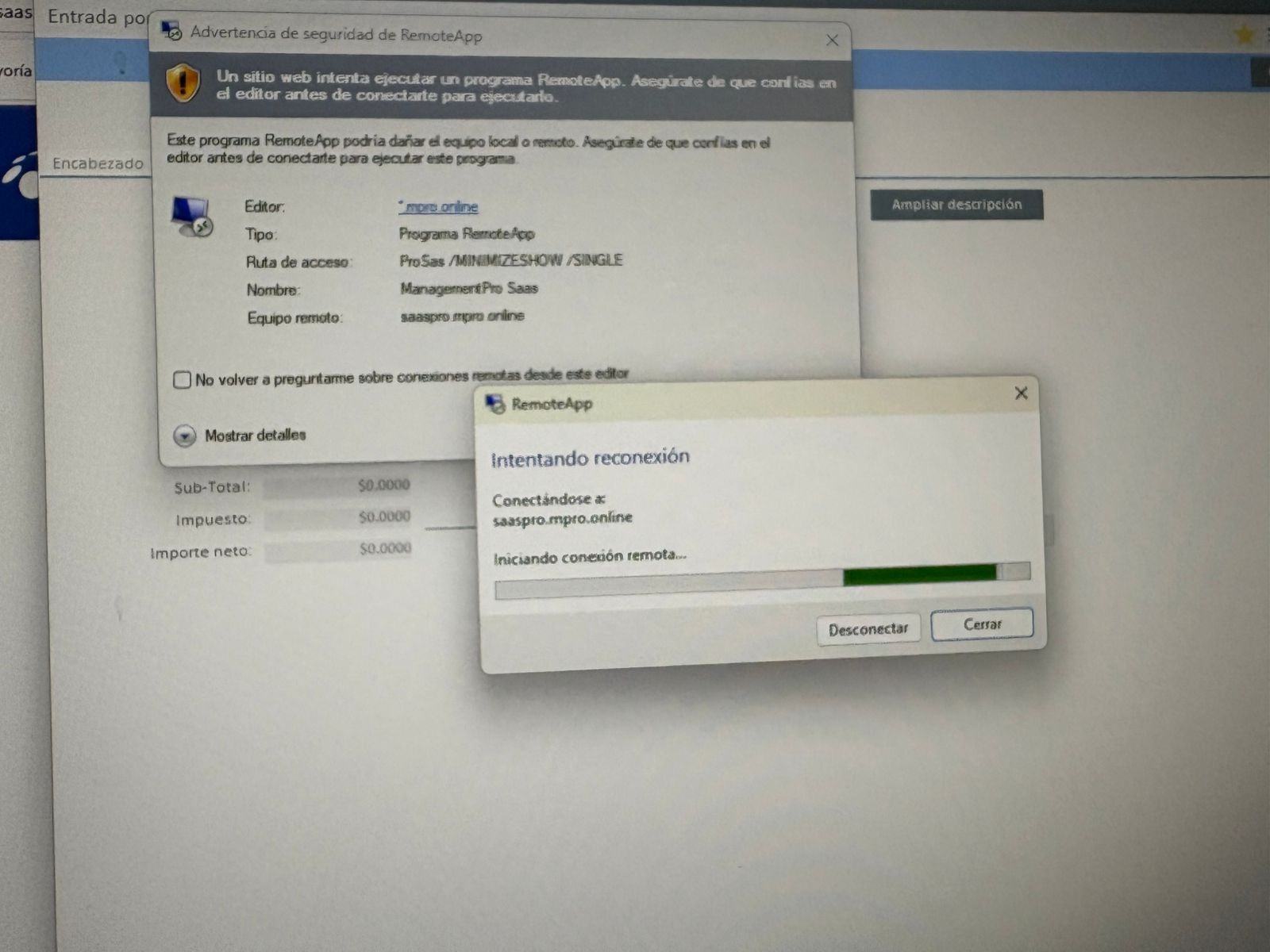 Buenas tardes, para reportar que sale este mismo mensaje en sistema, cuando estoy dando entrada a producto de la nada se desconecta y pierdo todo lo que ya habia avanzado. Tambien el sistema ha estado muy lento.