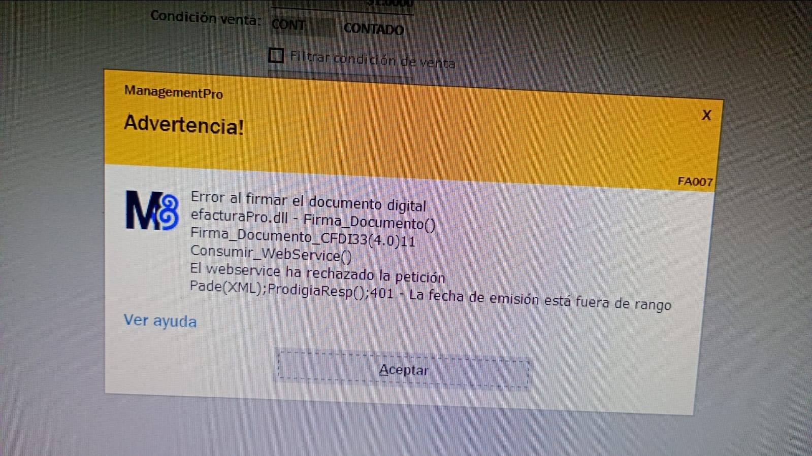Me aparece un error al intentar dar de baja esta venta, y por ese motivo no puedo eliminarla. Solicito su apoyo para poder cancelarla y realizar nuevamente la operación.
