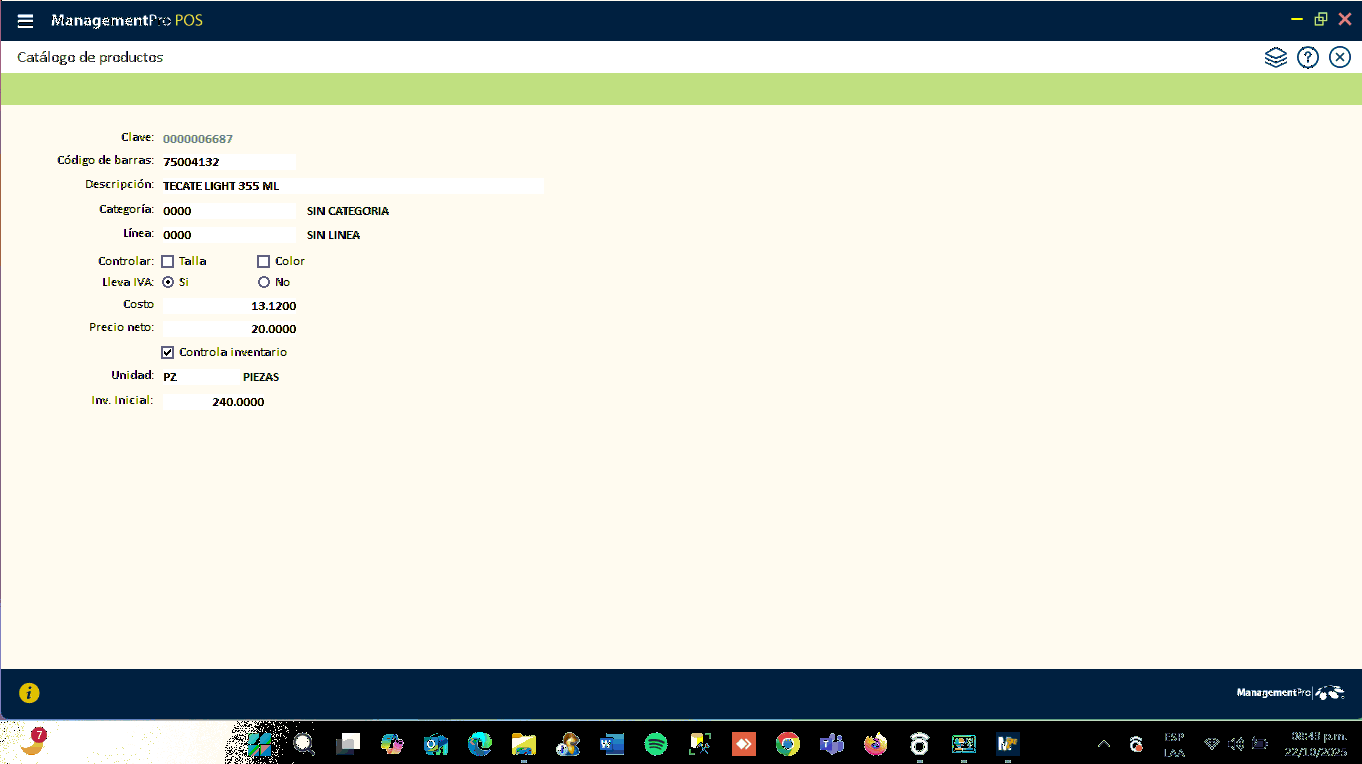 El código de barras EAN/UPC, ya está asignada al producto: CERVEZA TEKATE LIGHT LATA 340ML