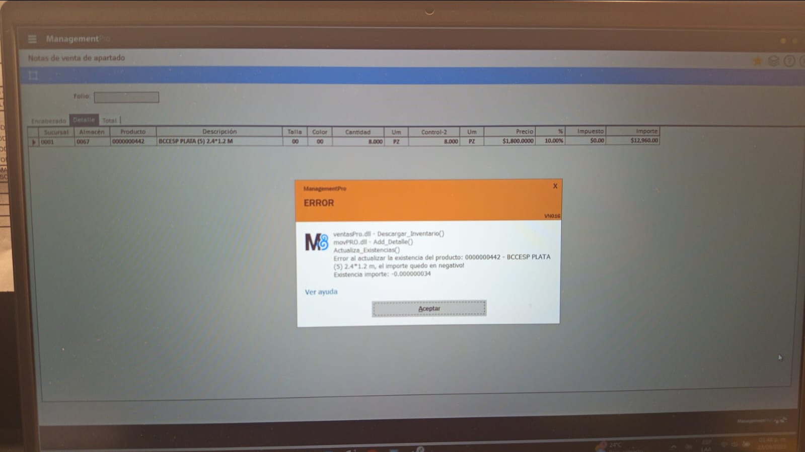 Se ha corregido el importe , nos comentan los usuarios que pudieron realizar su nota de venta.