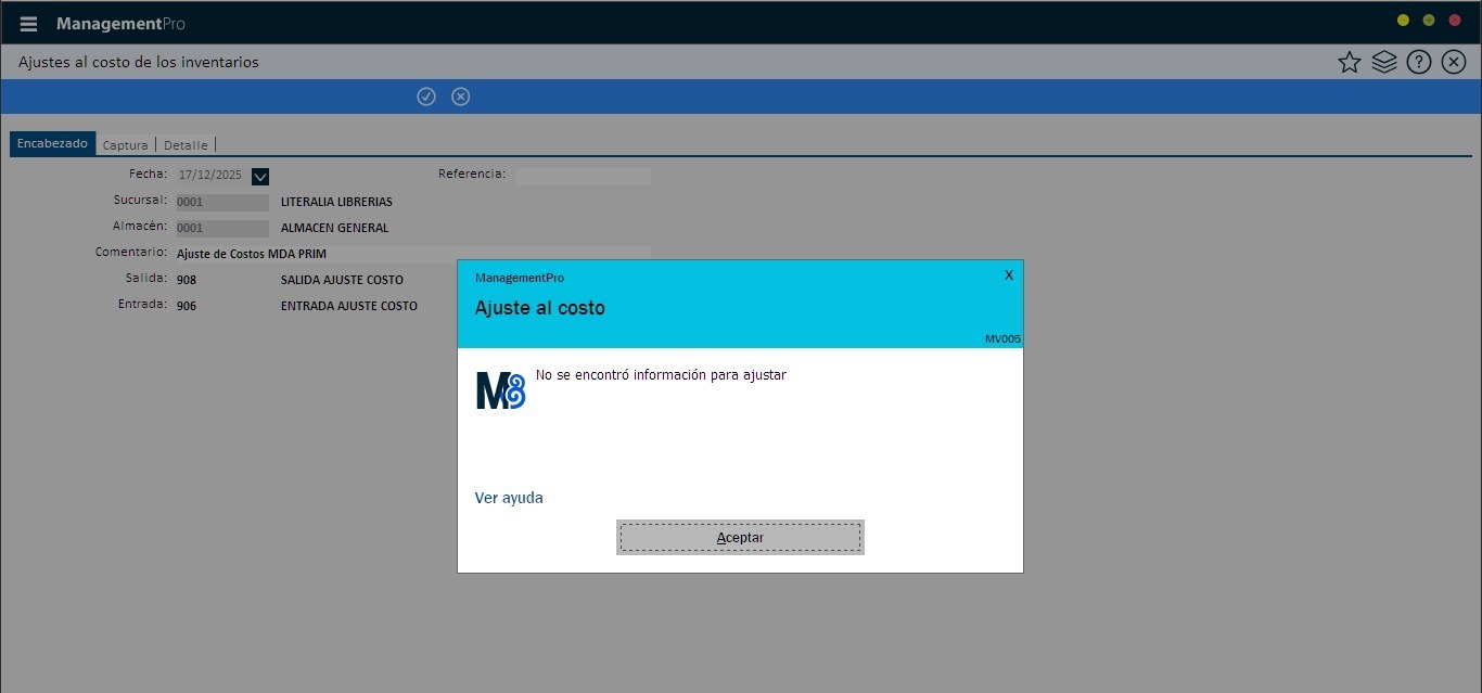 Buen día, quiero modificar el costo de un producto y me arroja la leyenda "No hay existencias del producto 05486", al momento de querer hacer la devolución de dicho producto me arroja que en sistema hay 50 piezas