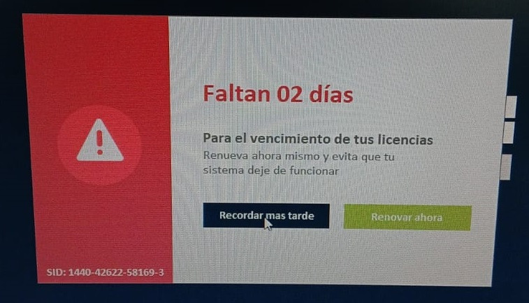 No está sicronozada la información del vencimiento de la licencia de Mpro