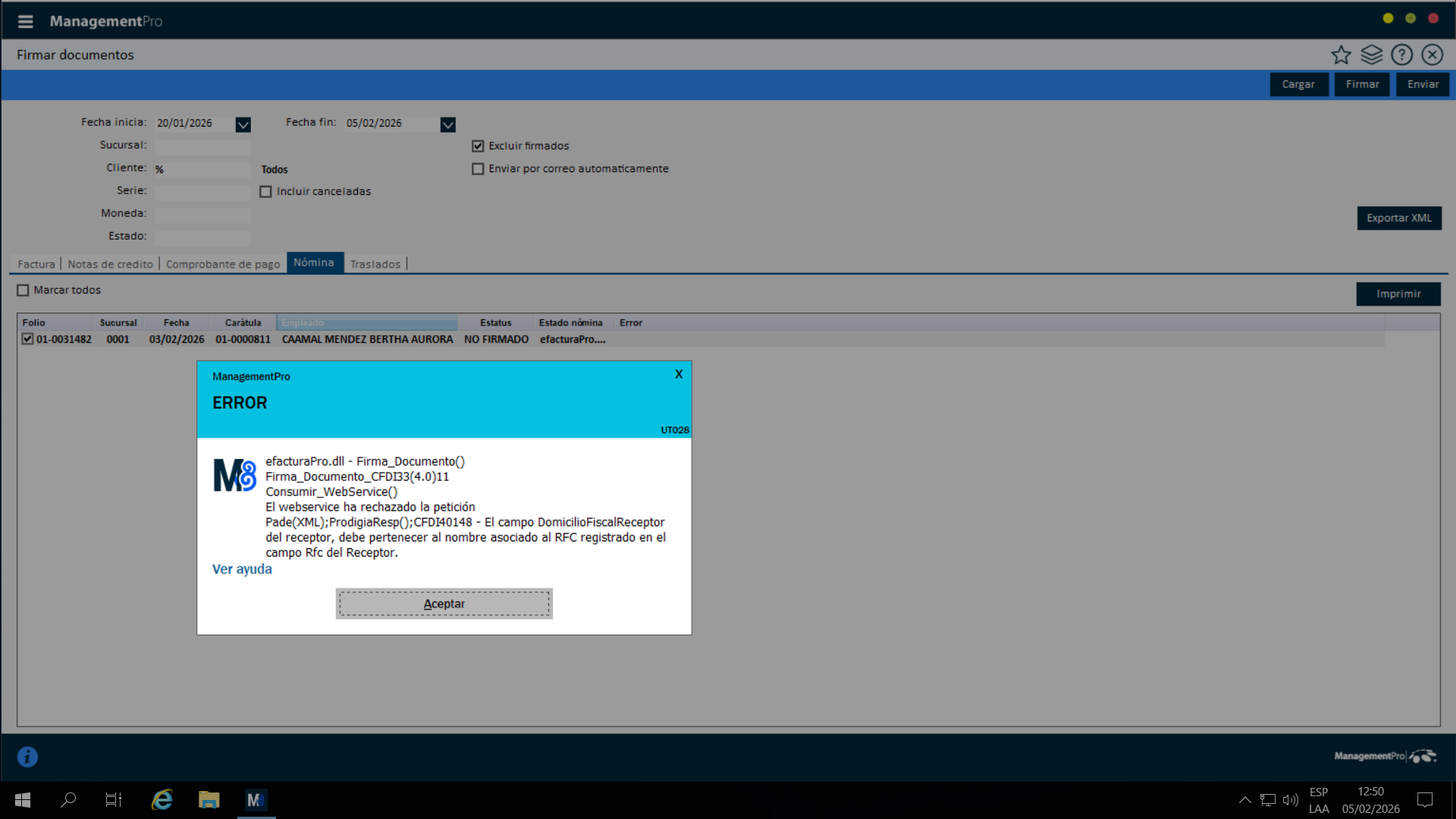 hola Buenas tardes, consulta por nomina de una persona que no timbra, ya revisamos su constancia fiscal y la vemos ok.