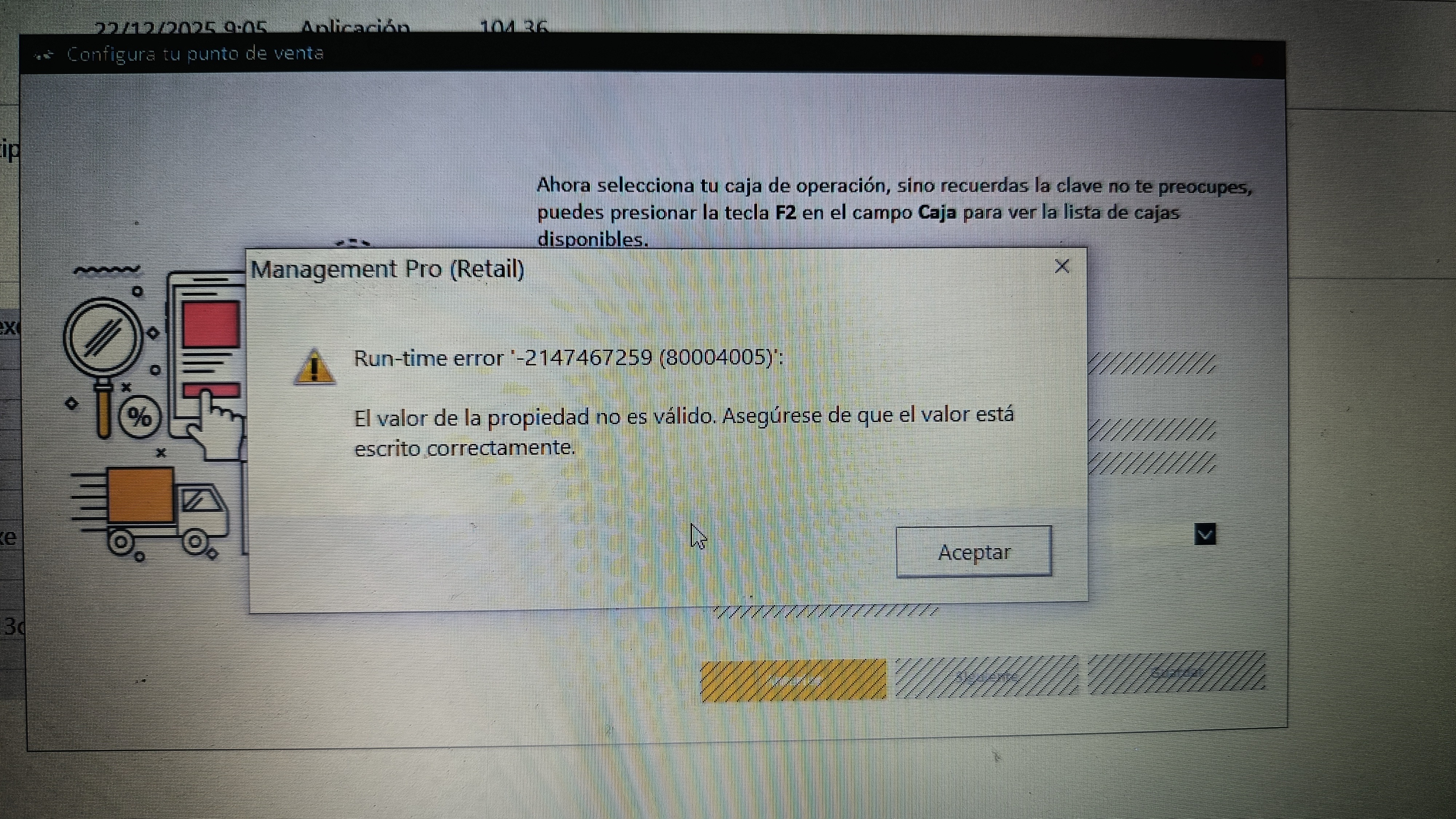 Buen día, alguna idea de como solucionar este problema qué envío por foto, el sistema estaba funcionando hoy al iniciar lleva directo a la configuracion de conexión se hacen las pruebas y conecta al darle siguiente sale ese mensaje, gracias.