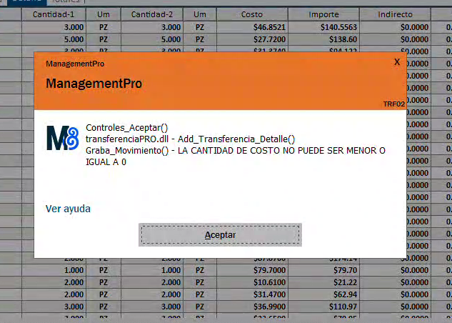 Hola, al hacer una recepción de una transferencia entre sucursales sale un error que dice "División by zero" y al dar aceptar sale este mensaje. No encontramos el problema puesto que ningún producto de la lista es igual o menor a 0
