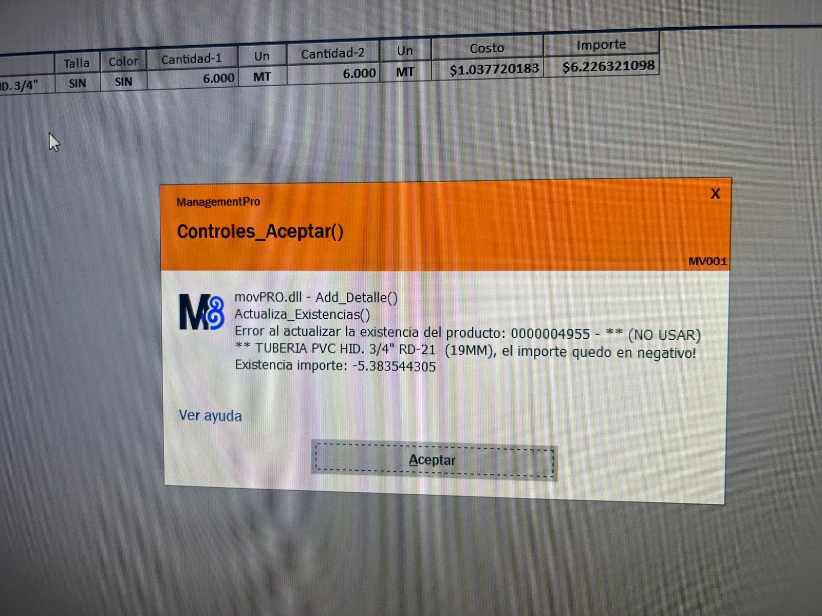 Tengo un producto que no me deja hacer ning{un movimiento, no se por que? les adjunto la imagen de lo que me sale cuando lo intento usar. Actualmente lo tengo dado de baja, pero me afecta en mi inventario porque sale que tiene stock.