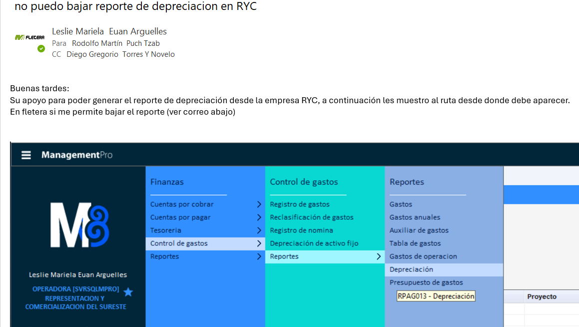 HOLA, buenos dias, un caso con el reporte de DEPRECIACION en un de las empresas del grupo JR, en todas las empresas este reporte de depreciacion sale, se genera bien, pero en la empresa RYC manda mensaje de error