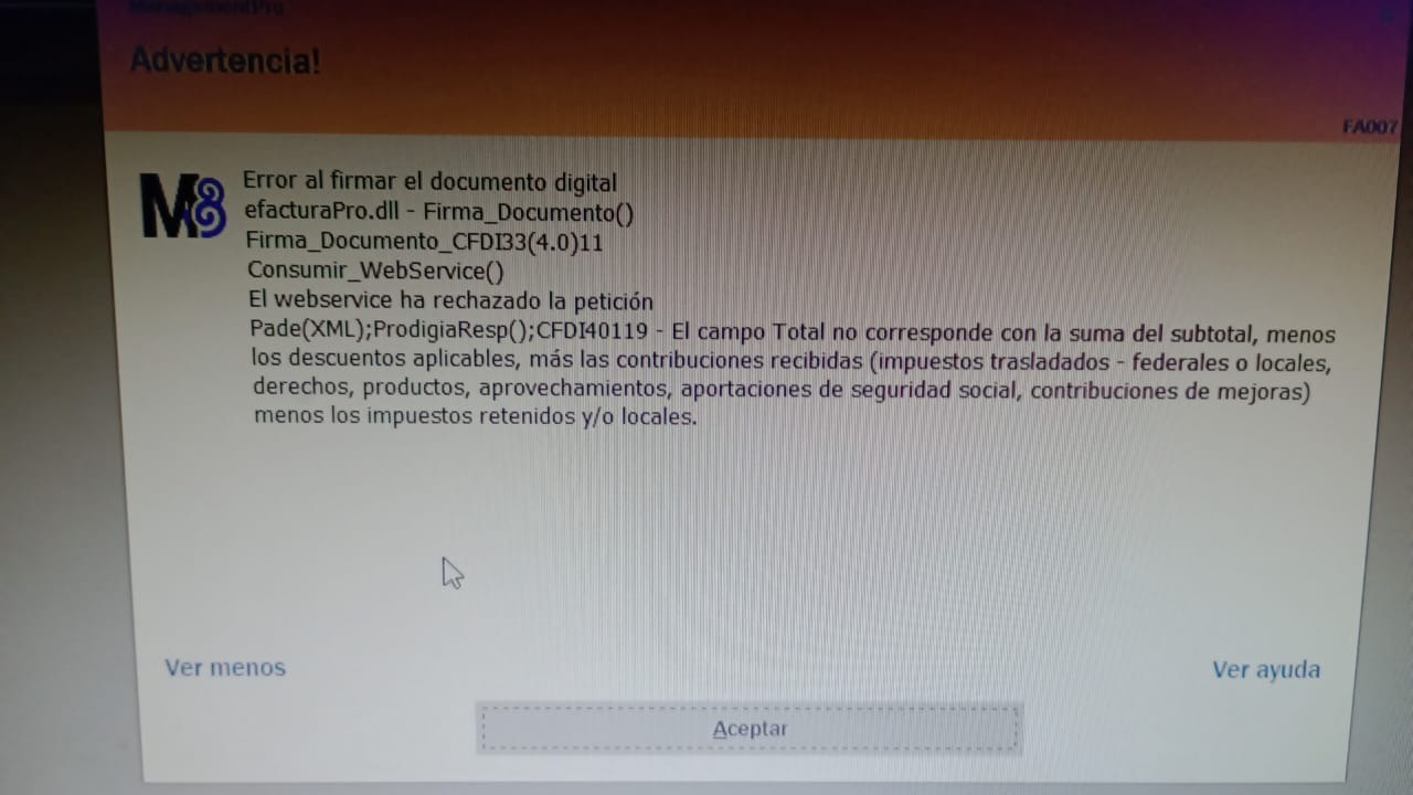 Agradecería mucho su apoyo para identificar la causa del problema y orientarnos sobre los pasos a seguir para su pront... Ver mas