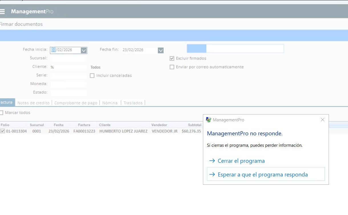 buenas tardes, tenemos problemas al querer facturar, se queda pensando y se sale del sistema, me pueden apoyar con el tema